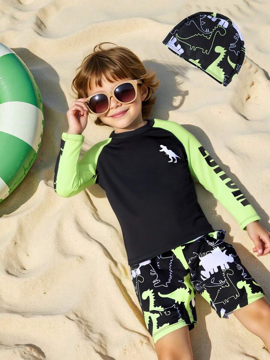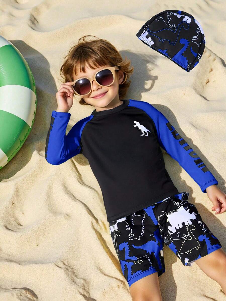 Conjunto 3 peças Praiano infantil Shorts Camisa e touca de Banho Rodrigo