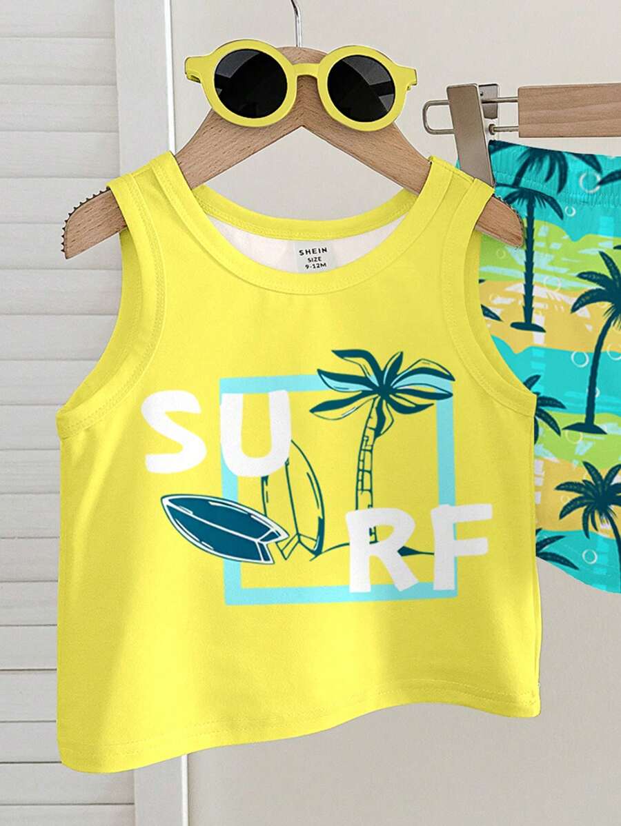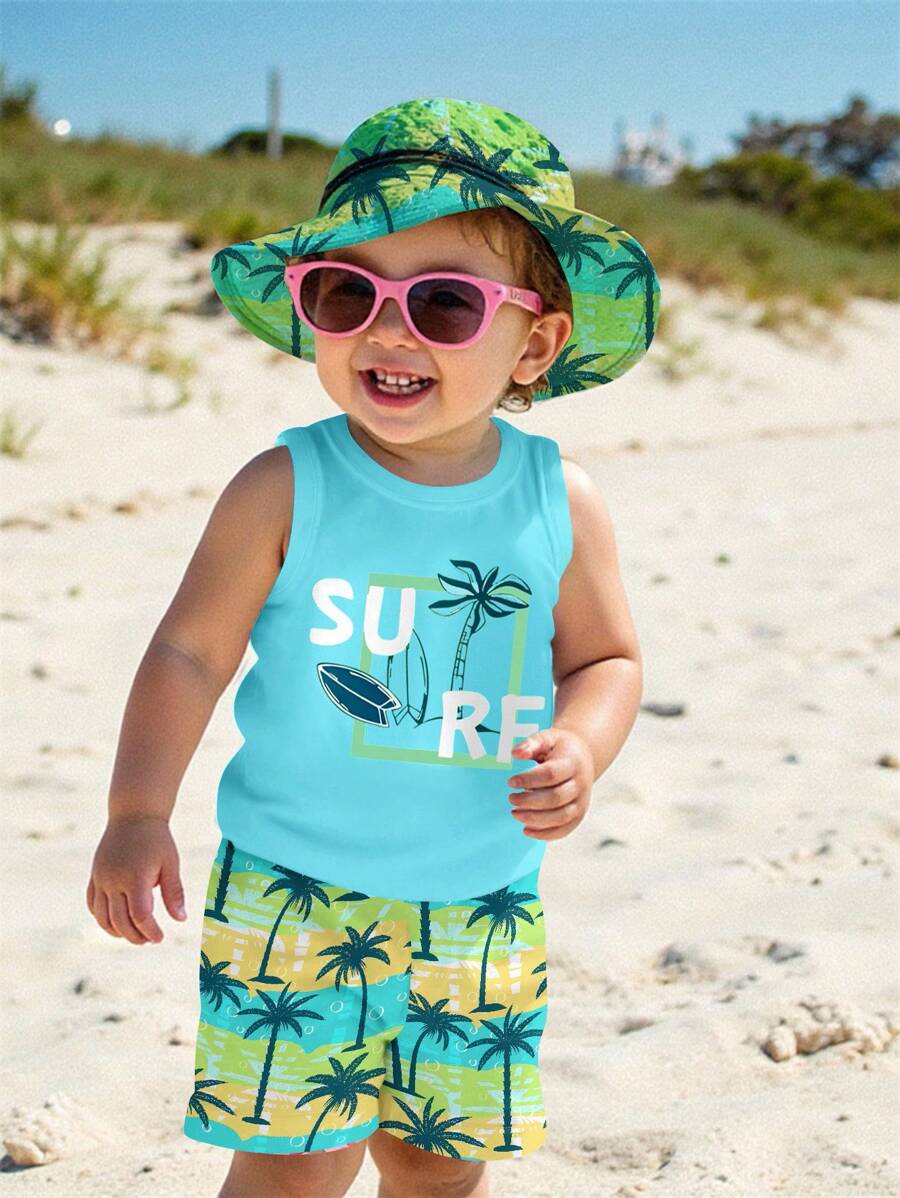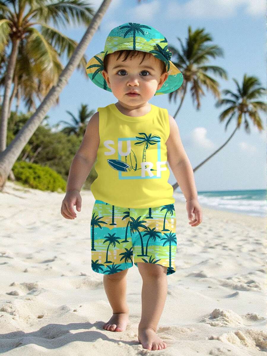 Conjunto de bebê masculino regata e shorts com chapéu kit praia Daniel
