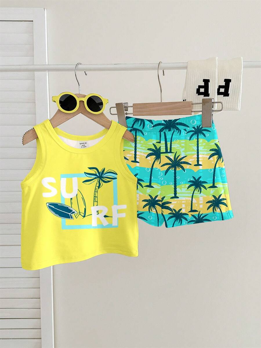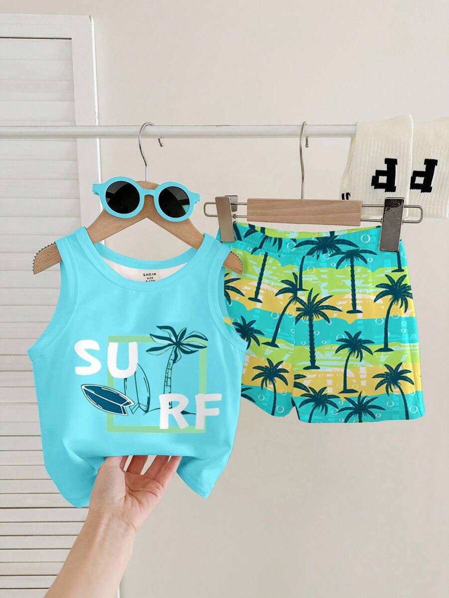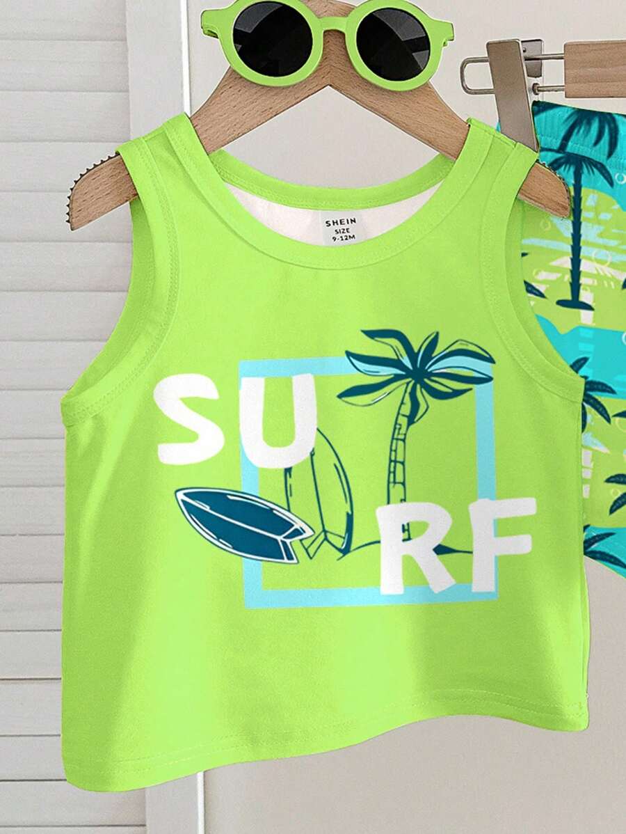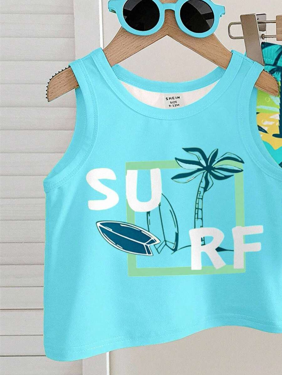 Conjunto de bebê masculino regata e shorts com chapéu kit praia Daniel