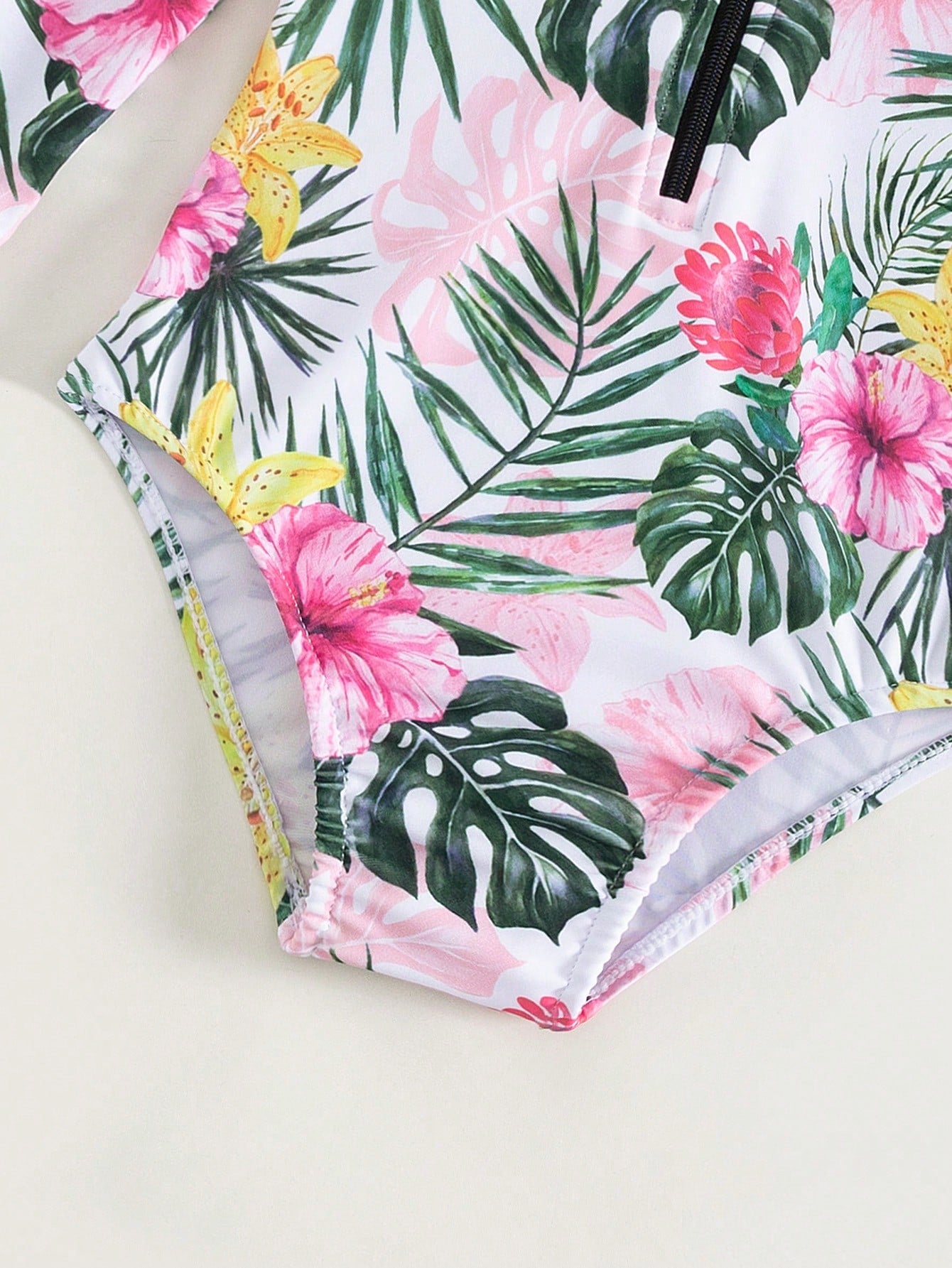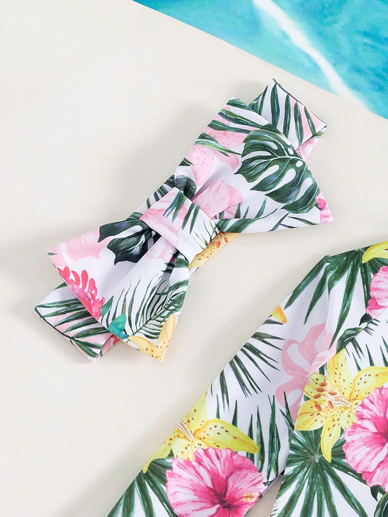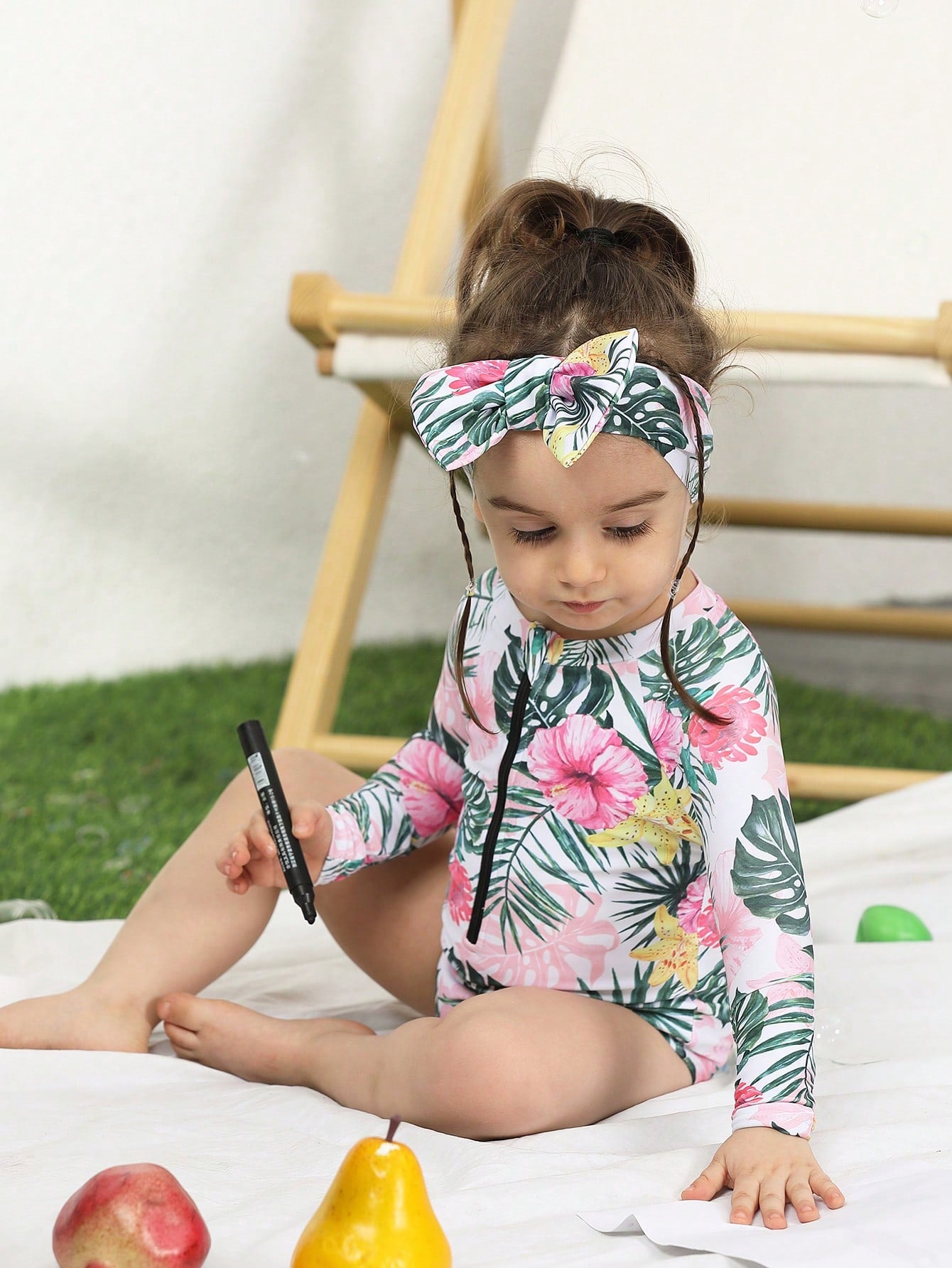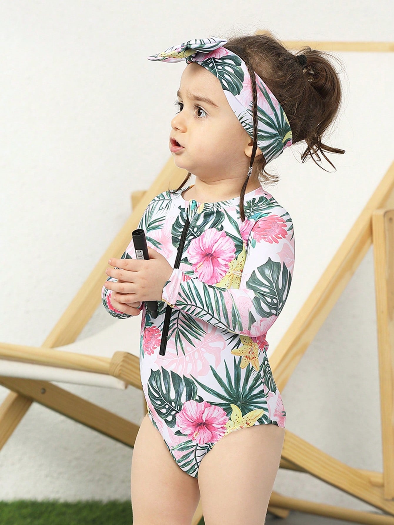 Maiô feminino para Bebê Com Estampa Tropical E Faixa Para Cabeça Natasha